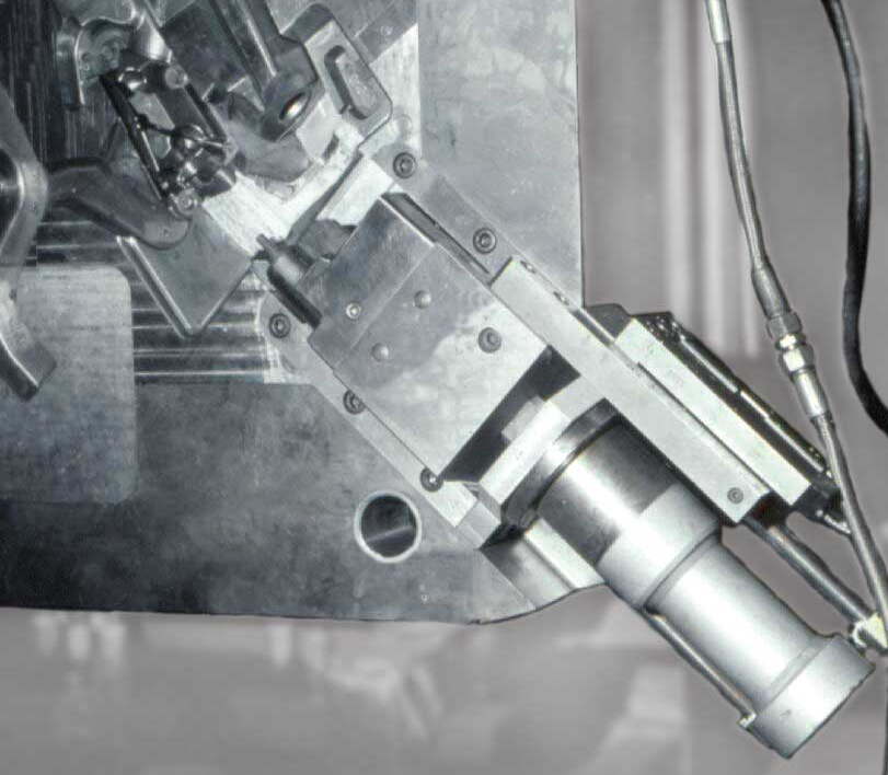 Les moules de fonderie sont chacun conçus pour la production de 100 000 pièces avec un temps de cycle de 30 à 60 secondes. Les vérins hydrauliques résistent à cette charge sans remplacement des joints, souligne le spécialiste de la fonderie sous pression : « Avec les produits d'autres fabricants, nous avons également eu de bonnes expériences au début. Cependant, les durées de vie étaient considérablement plus courtes, la charge thermique et les forces transversales entraînant une usure excessive. » La fonderie utilise presque exclusivement des vérins de catalogue de la série 120 provenant du catalogue électronique E-Kat (aujourd'hui configurateur de produits HäKo) de Hänchen, qui fonctionnent avec une pression de service de 150 bars. Ils ont été modifiés pour des températures ambiantes allant jusqu'à 200°C maximum grâce à des combinaisons de joints spéciales et un orifice d’huile de fuite et sont adaptés au fluide HFC. Mis à part cette petite modification, il s'agit d'un vérin de série économique. Un vérin hydraulique est une construction spéciale pour des raisons de place, un autre fonctionne via un multiplicateur de pression avec 300 bars. En raison de la pression de coulée spécifique, qui s'exerce sur une très grande surface de moule sur le tiroir, des forces de 56 t apparaissent. Cette force est exclusivement maintenue par les vérins Hänchen, dans lesquels une vanne de retenue a donc été intégrée, qui peut être déverrouillée hydrauliquement.