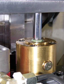 Outre la précision de positionnement, la stabilité et la densité de force, l'hydraulique offre d'autres avantages : les conduites se trouvent dans le béton polymère, qui est utilisé pour les fondations de la machine pour des raisons de précision, une forme d'intégration qui n'est pas si facile à réaliser avec des conduites électriques. Le client dispose ainsi d'une unité compacte avec seulement quelques raccordements. Les entraînements linéaires hydrauliques décrits développent une force d'avance allant jusqu'à 4 500 N pour déplacer la pièce à usiner jusqu'à 7 000 min-1 avec un couple maximal de 50 Nm. En raison des exigences extrêmes en matière de précision et de l'absence de forces transversales, les vérins Hänchen livrés à Schütte sont équipés de la bague d'étanchéité flottante brevetée. Cette « Servofloat® Qualität » fonctionne presque sans frottement. Pour les mouvements extrêmement lents et très rapides, elle permet une réduction de la pression sans contact vers l'extérieur et un faible débit de fuite. C'est pourquoi ces vérins offrent une précision de positionnement et de répétition maximale et sont exempts de stick-slip.