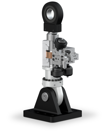 Dans les servovérins régulés, qui appliquent une force de 400 kN, la bague d'étanchéité flottante brevetée de la version Servofloat est utilisée. Ce faisant, une douille en acier suit la déviation radiale de la tige de piston avec une fente d'étranglement d'étanchéité constante de quelques 1/100 mm, pratiquement sur toute la plage de pression. Cependant, ce procédé ne fonctionne qu'avec une précision de production de l'ordre de quelques μm, car sinon le débit de fuite entraîne des pertes hydrauliques trop importantes.