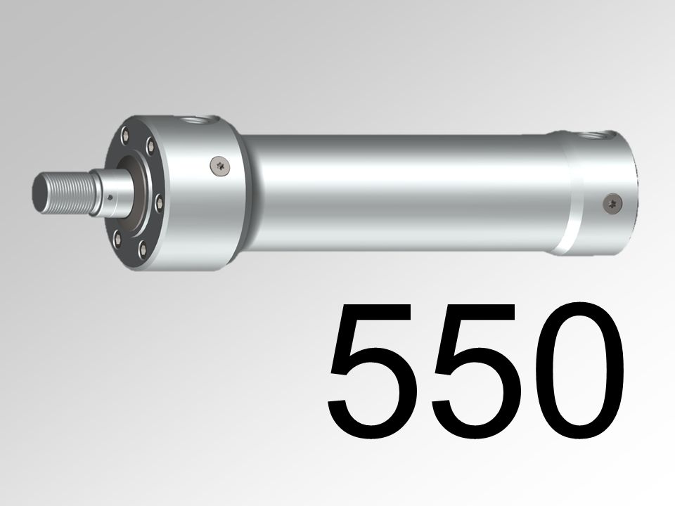 La série 550 correspond aux dimensions d'implantation, comme par exemple le filetage de la tige de piston, les dimensions de la bride ou de la rotule ISO 6022, le cylindre de base lui-même correspond à la série 300 avec tous ses avantages.