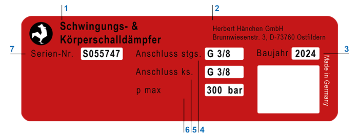 Exemple de plaque d'identification de l'amortisseur de vibrations et de bruit de structure