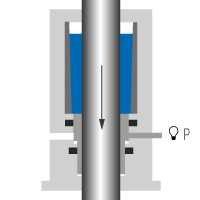 Le dispositif antichute fonctionne mécaniquement selon le principe de fonctionnement de l'adhérence. En l'absence de pression, la force de retenue s'accumule via le système de serrage conique lorsque la charge s'abaisse. Le principe d'auto-renforcement entre en jeu, ce qui verrouille la tige.